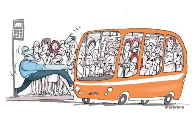 Esta deshumanización se traduce en actos cotidianos, como el joven que ocupa dos asientos con su mochila, el desentendido que ni mira para el costado, la falta de respeto hacia los ancianos o las mujeres embarazadas…